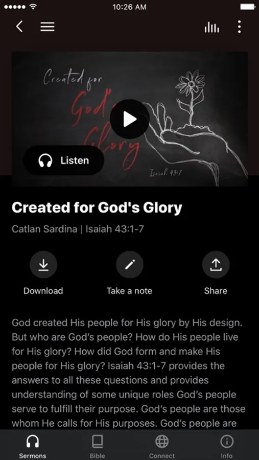 With our app you can watch or listen to sermons, see upcoming events and more. After you’ve downloaded and enjoyed the content, you can share it with your friends via Twitter, Facebook, or email.