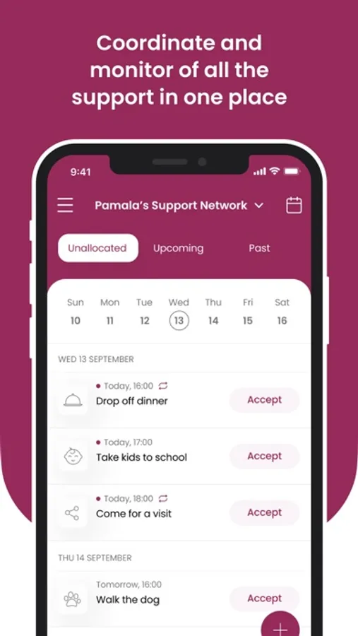 Friends and family who have offered to help can be invited to join the support network via our simple SMS invite.
