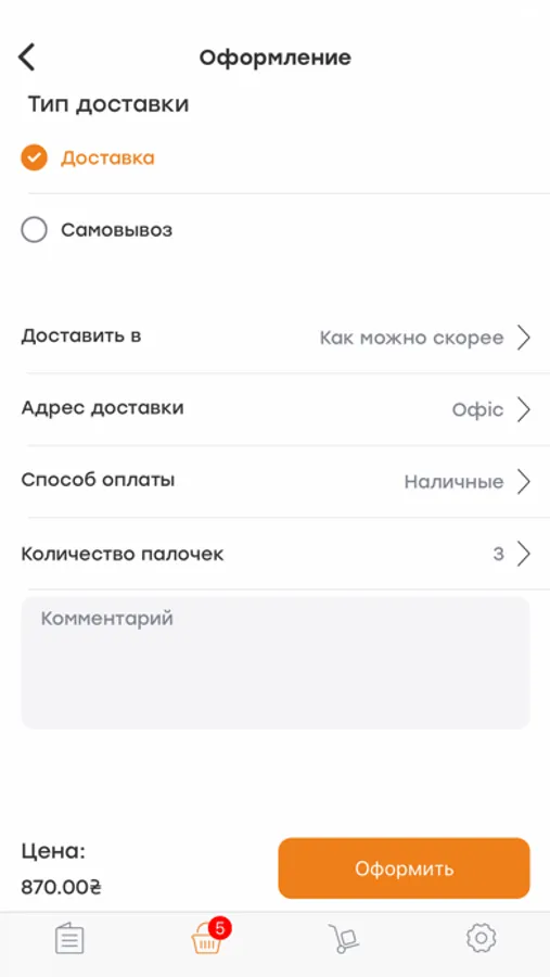 • встановити бажаний час доставки замовлення за вказаною адресою;