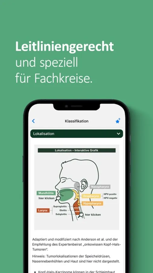 Diese App ist nur für Fachkreise mit einem onkowissen.de-Login bestimmt. Die App dient ausschließlich als Informationsgrundlage für die Behandlung von Kopf-Hals-Tumoren.