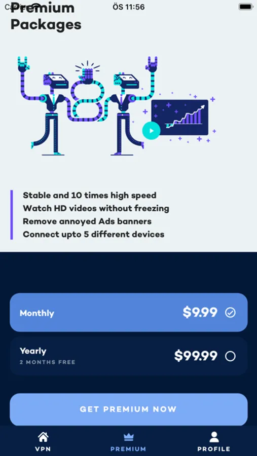 - Connect to VPN with just one tap.
