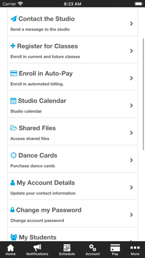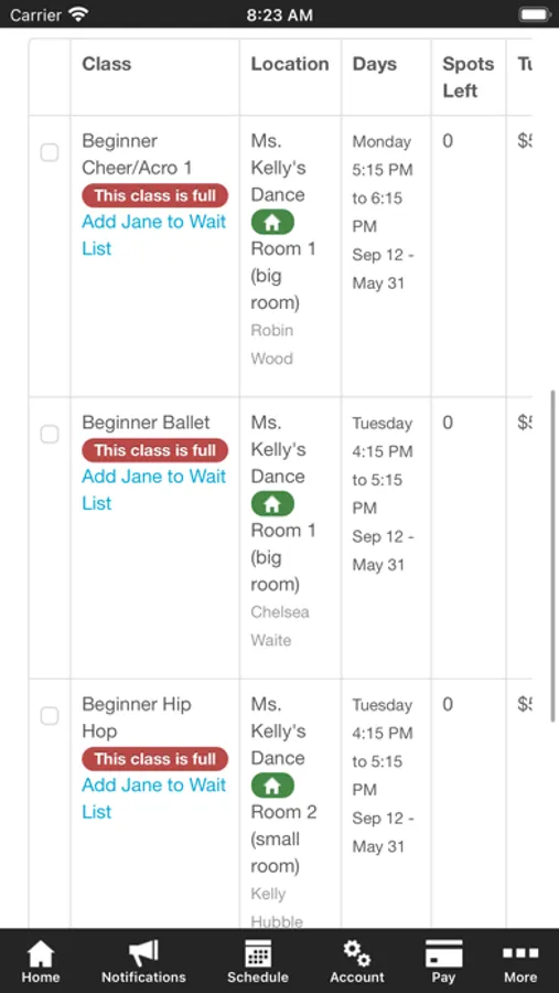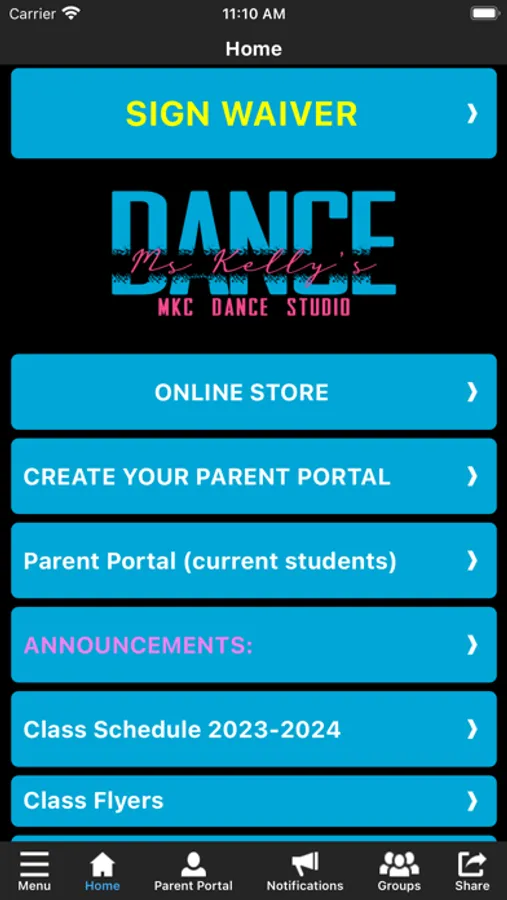 The Ms. Kelly's Dance app allows you to manage your account with ease, register for classes, pay tuition, and purchase merchandise . You'll also receive important notifications about class changes, closings, registration openings, special announcements, and upcoming events.