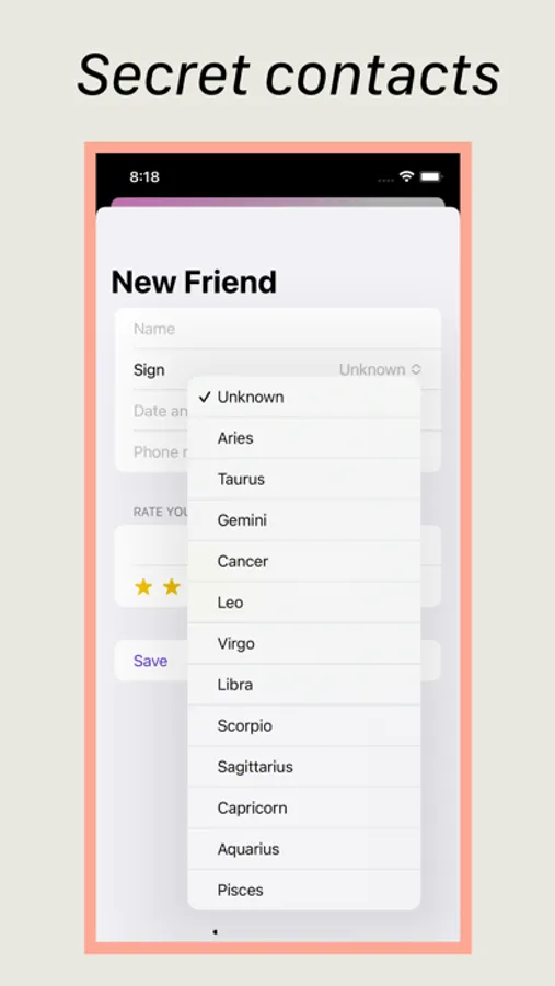 This application is necessary for all modern people. Since you can record a contact and add tons of useful notes for that person. Know about the trends in the sky and understand when people go crazy. Or when a good time for auspicious deeds. We all have a problem remembering a hundred thousand unnecessary birthdays, some special information about a person. We can shift this task to the application, because we live in a world where you need to be attentive to everyone and tolerant, remember everything that is not necessary.