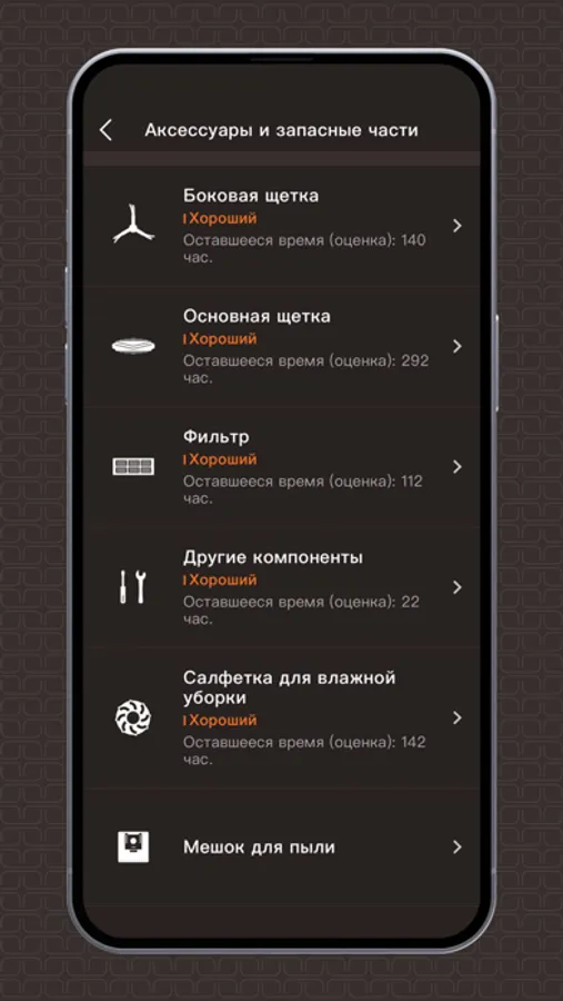 Управляйте роботом-пылесосом BORK и следите за сроками замены аксессуаров в приложении.