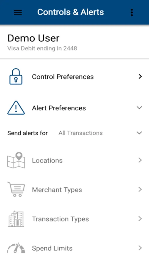 You can set controls regarding the transaction types, geographic rules, and the merchant types where your card can be used.