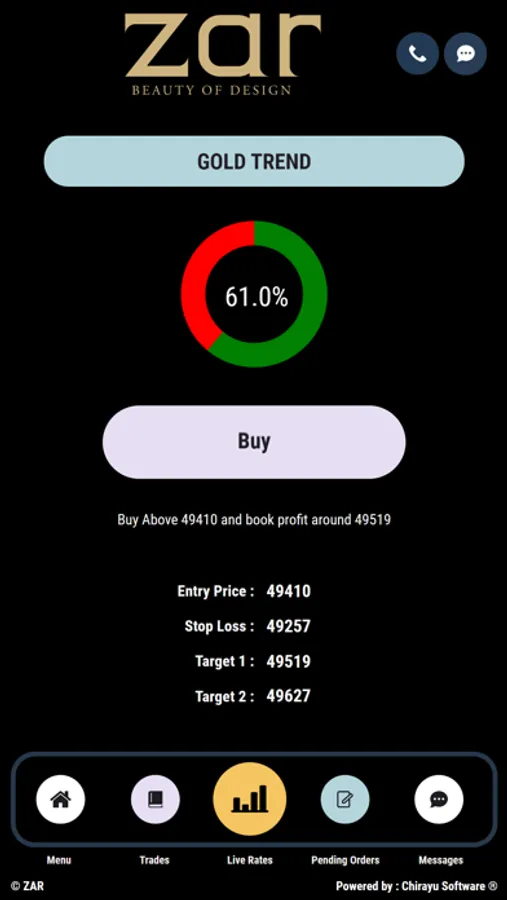 It provides Gold Price Trend prediction based on AI and technical algorithm.