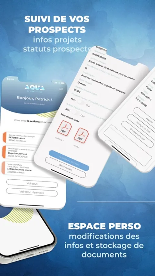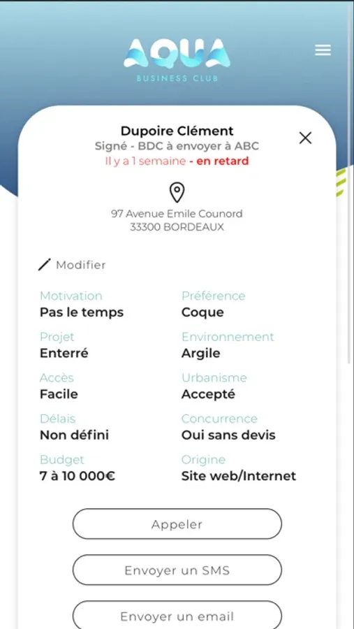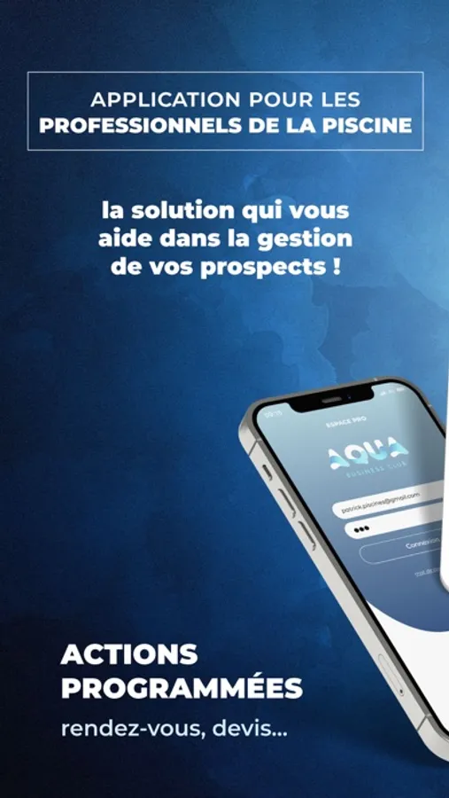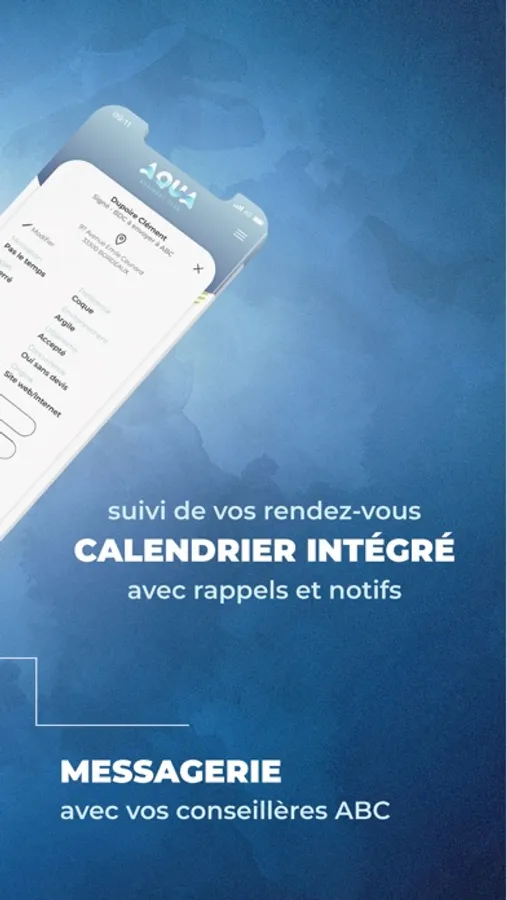 L’application Aqua Business club s’adresse à tous les professionnels qui cherchent à mieux organiser ou à anticiper leurs journées pour ne perdre aucun client. Une application au design intuitif et élégant, pour une prise en main la plus simple possible. ABC a conçu chaque fenêtre de cette application pour s’adapter à vos besoins. L’application centralise automatiquement l’ensemble des informations qui sont nécessaires à la gestion de votre porte-feuille client.