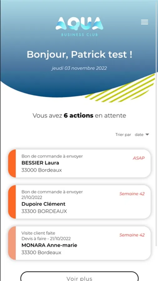Conçue comme un emploi du temps virtuel interactif, l’application Aqua Business Club vous permet de voir en priorité vos tâches les plus urgentes.