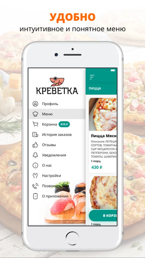 Воспользуйтесь удобным приложением для заказа еды «Кафе Креветка».