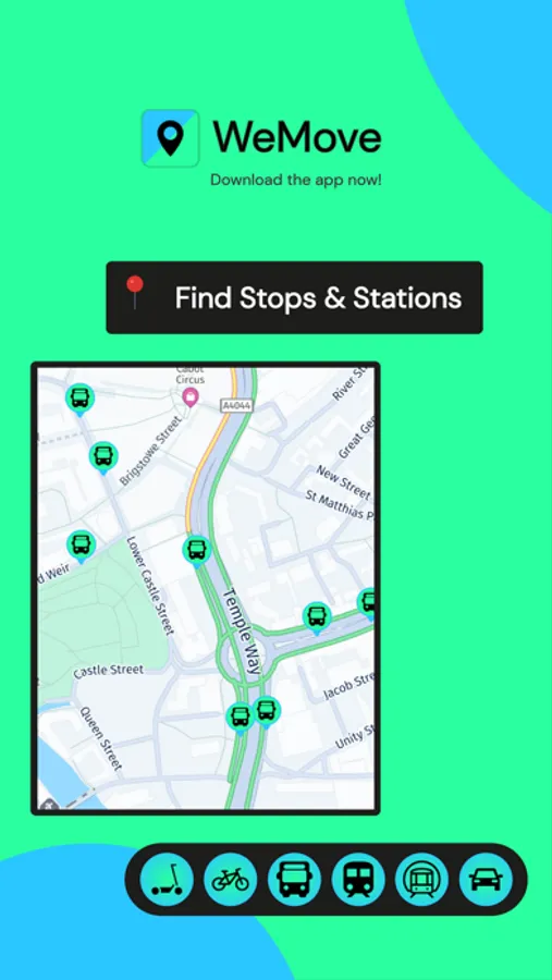 The current version of WeMove allows users to find, understand & route. Micro-mobility options such as E-Bikes & E-Scooters are all searchable on our world map, with the ability to view the battery %, cost to use and more.