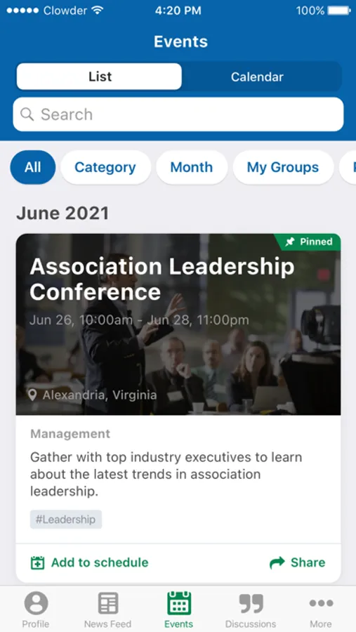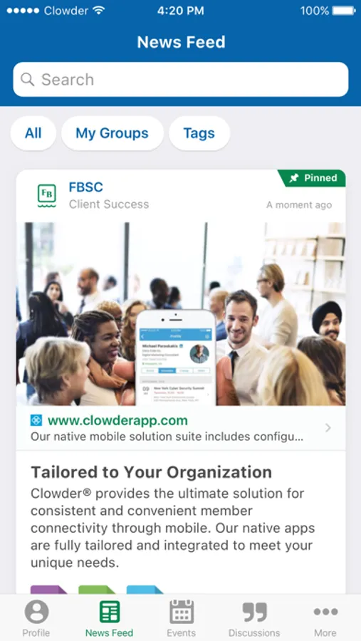 • News Feed: Streams of content with a focus on the banking industry. Post videos, articles, photos, information, updates and more!