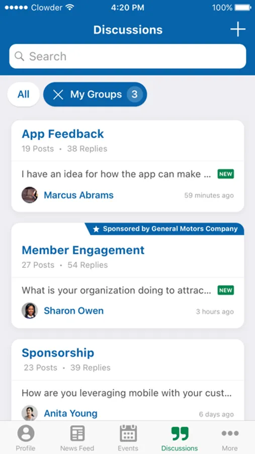• Forums: Create group discussions by posting questions or topics for the FBSC community to weigh in on.