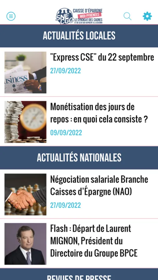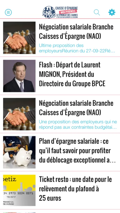 Dans cette application, retrouvez facilement toute l’actualité, nos tracts et toutes les informations liées au dialogue social au sein de la Caisse d’Epargne Midi-Pyrénées et du groupe Caisse d’Epargne.