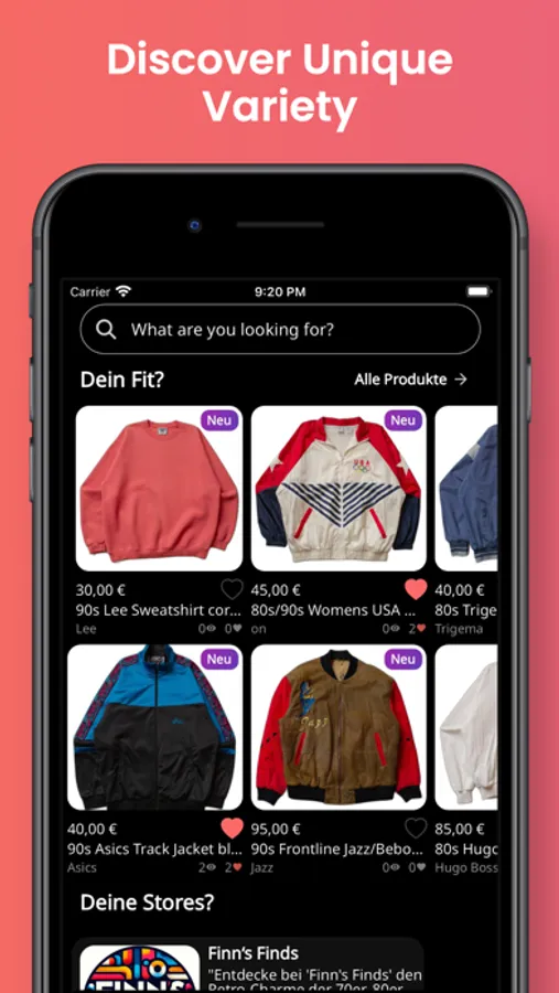 Unisecs presents a diverse array of vintage finds and secondhand treasures from all over Germany, and soon internationally. Our platform learns from your preferences to provide tailored recommendations. Your feedback is our compass – it aids us in continuously enhancing Unisecs and developing new features that meet your needs. With regular updates based on your suggestions, we strive to make Unisecs the ultimate secondhand app.