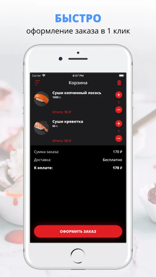 Скачивайте наше приложение, оформляйте заказ и наслаждайтесь любимой едой, где бы Вы ни были! Приятного аппетита!