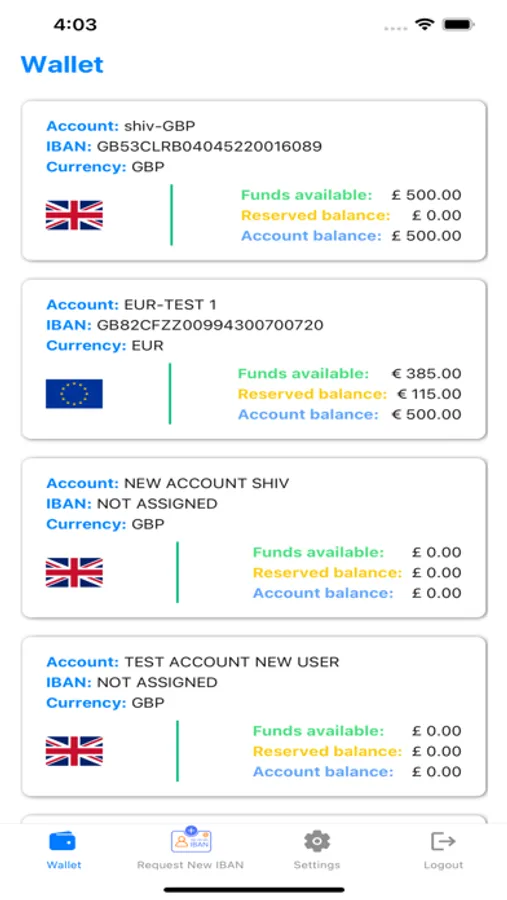 A full-suite app for requesting IBANs, cross-border payments, FX, debit cards and more.