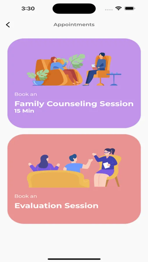 Our app makes it easy to book your evaluation or counseling session, Subscribe to Amwaj Rewards program (A rewards program designed to collect points in many different ways and redeem them as in-kind rewards or discounts), and get access to see the suggested tasks and rewards, check your total score.