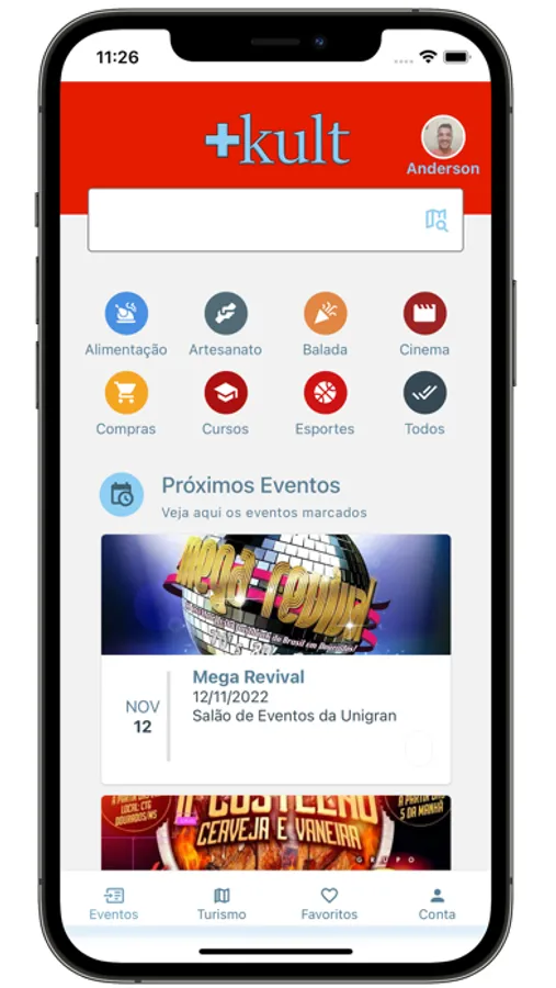 O aplicativo conta com filtros, onde você consegue pesquisar e estar por dentro dos eventos de acordo com o seu gosto pessoal, sem perder tempo procurando em meio a tantos nichos.