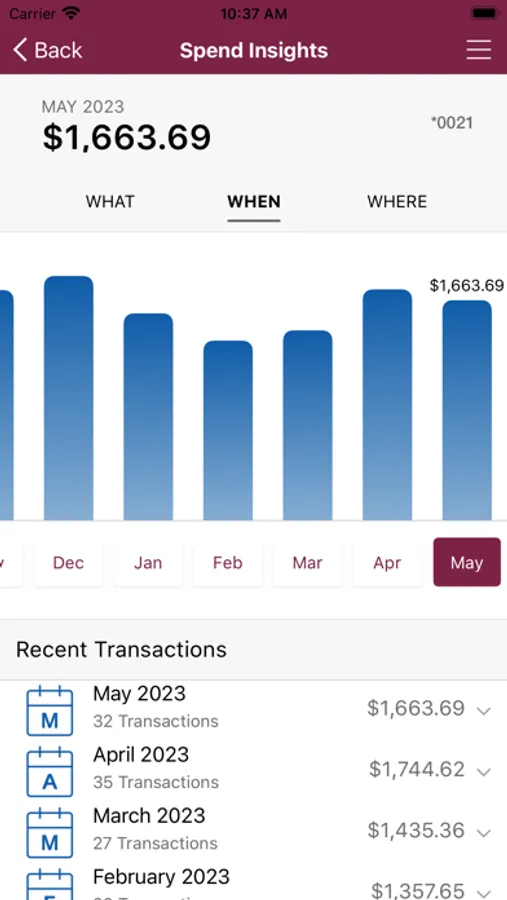 Alerts for PIN and signature transactions can be set up to keep you informed of your debit and credit card usage and help you quickly detect unauthorized or fraudulent activity. This app can send an alert when a card is used or when a card transaction has been attempted but is declined – and additional customizable alert options are available. Alerts are sent in real time, immediately after a transaction has taken place.