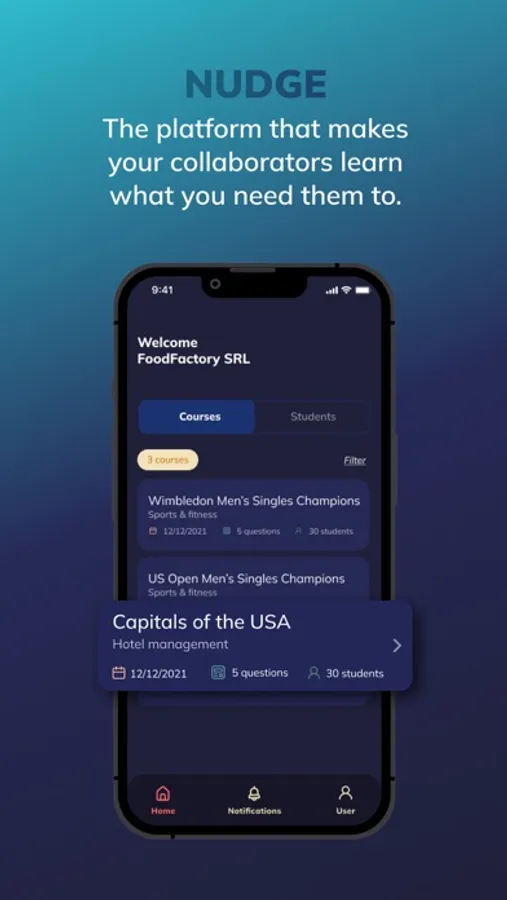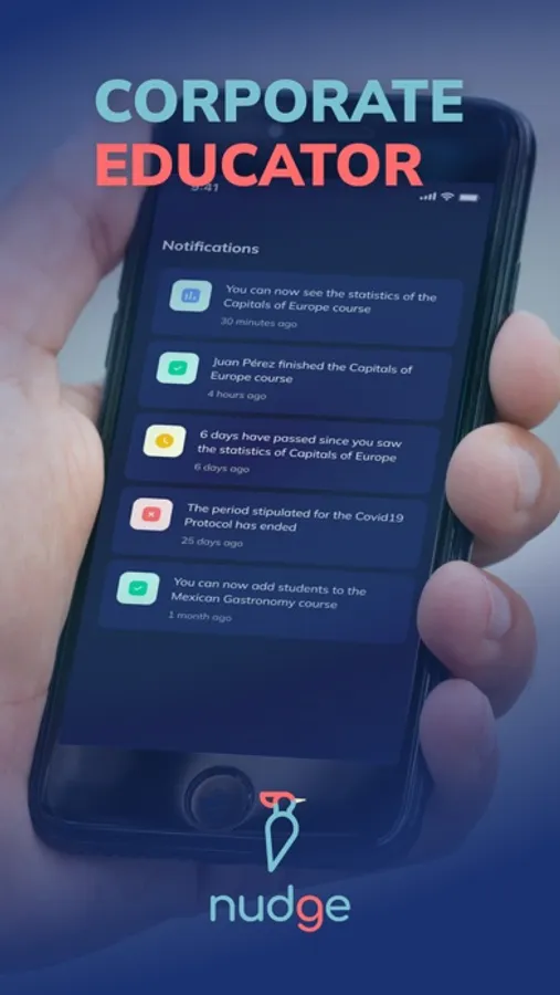 Nudge is the app that your company needed. Designed to train your collaborators and encourage them to learn and improve constantly, which will result in the growth of your company.