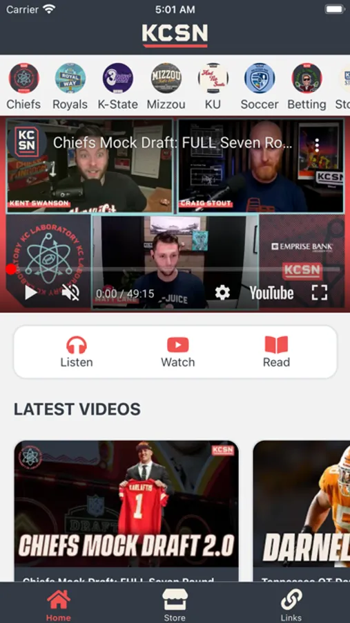 With the KCSN app, you’ll be able to find all of the relevant content you want on your favorite local teams, whether it’s a weekly podcast, YouTube video, or a written film review on the Chiefs - the app brings together more than 10 different media platforms and funnels them into one easy-to-use app that makes it easer to find the content you’re looking for to stay engaged with your favorite teams.