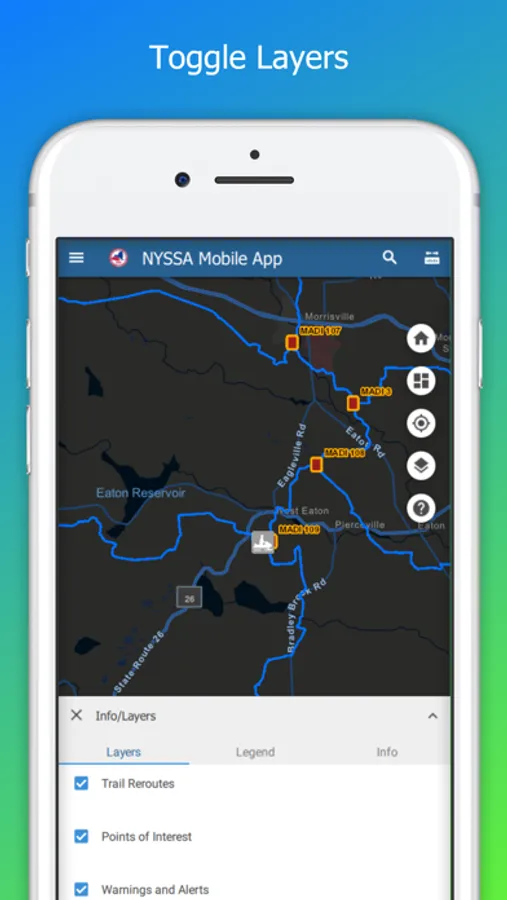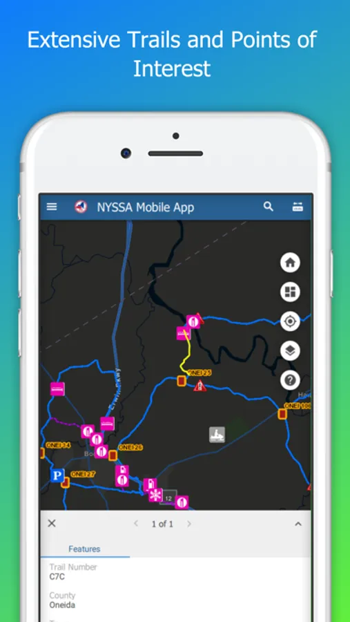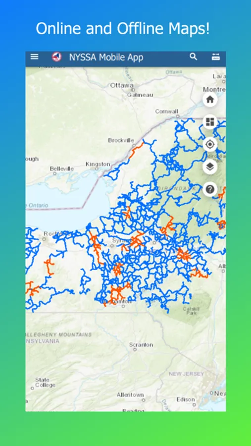 The NYSSA mobile app brings current snowmobile trail information and points of interest into live online and OFFLINE map capabilities. This is far from a static map as NYSSA’s 200+ clubs have LIVE access to update trail status as well as add warnings, reroutes and points of interest through their administrative access. Clubs also have access to add their own local trails, with new trails being added and updated regularly.