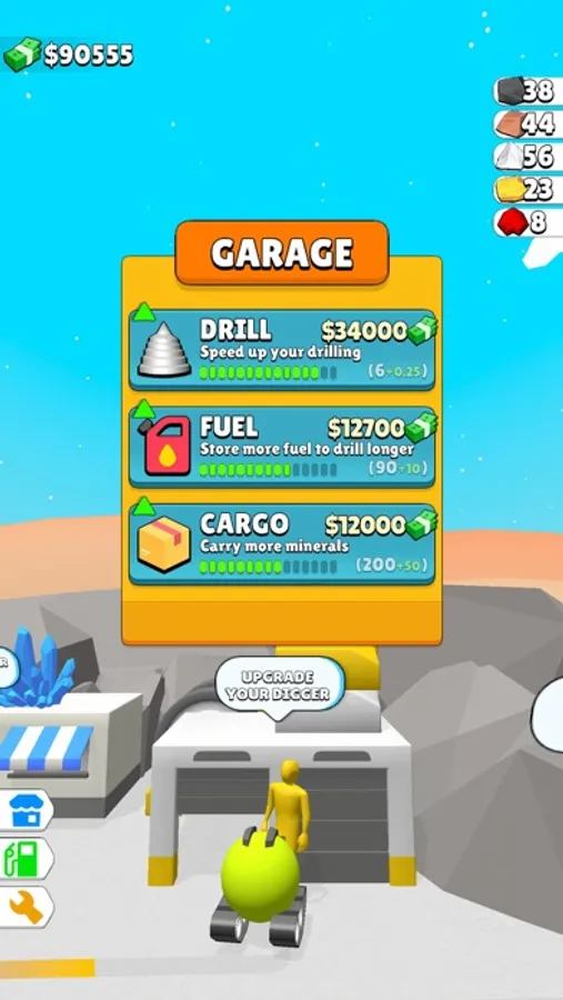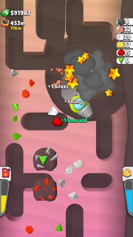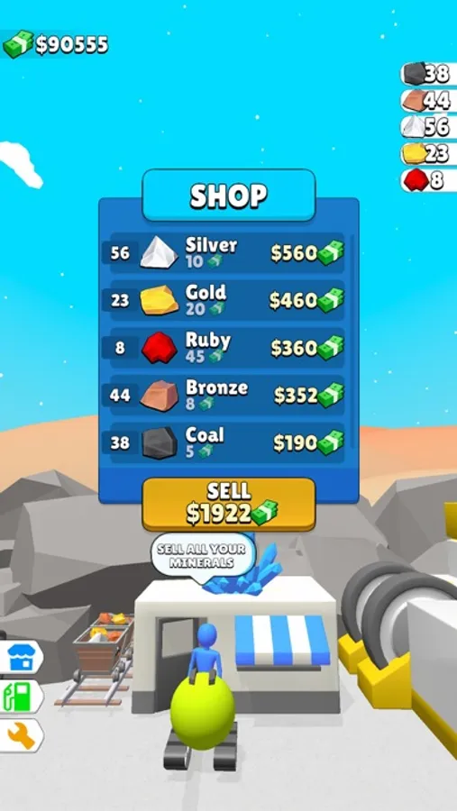 Collect mineral ores and sell them for money to buy fuel, digger upgrades.