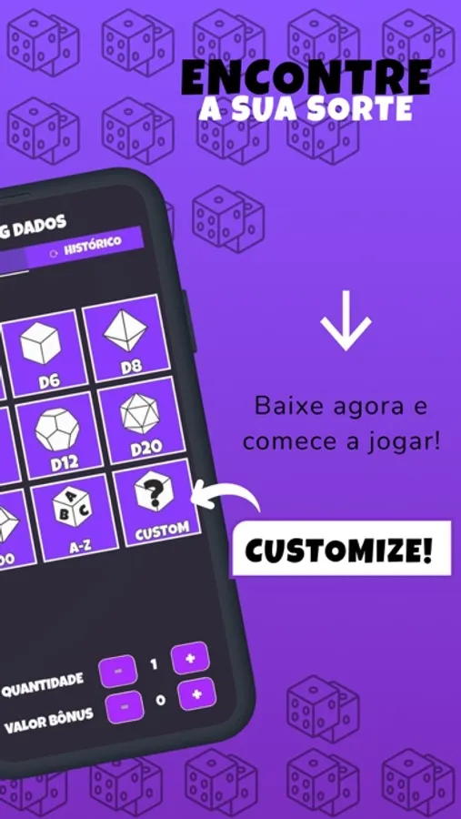 RPG Dados é o aplicativo perfeito para curtir com a família e amigos. Com apenas um clique, curta seu jogo em qualquer lugar e a qualquer hora!