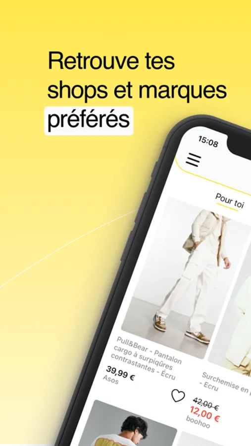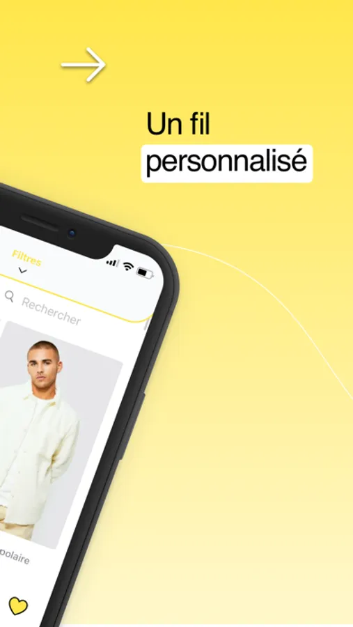 Plus besoin d'avoir une idée précise en tête, notre moteur d'IA vous recommande les vêtements qui reflètent vos goûts votre individualité, et s'affine au fil de votre navigation sur l'app.