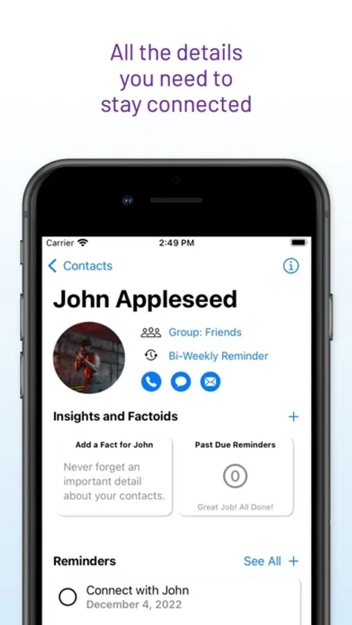 Easily manage your connections with our user-friendly reminder system that seamlessly syncs with your phone's calendar.