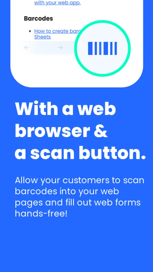 Provide a barcode scanning solution to any new or existing mobile web app. Stop doing manual updates and start using the Barbecue Browser. Allow your customers to scan barcodes into any web pages and fill out web forms hands-free!