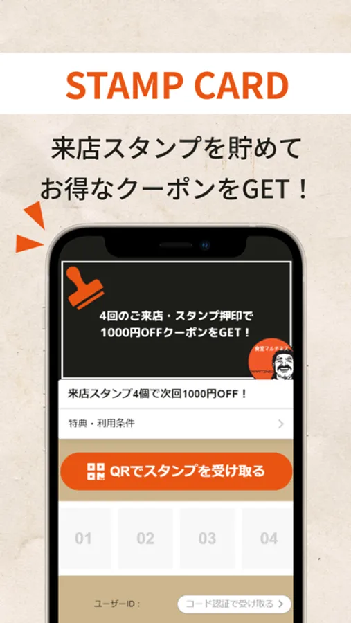 アプリ内にはスタンプカード機能も搭載!「食堂マルチネス」のご利用でスタンプがたまると、お得なコンプリートチケットが発行されます。スマホのアプリ内にスタンプカード機能が搭載されているので、カードを失くしたり忘れたりすることなくスムーズにスタンプを集めて頂けます。