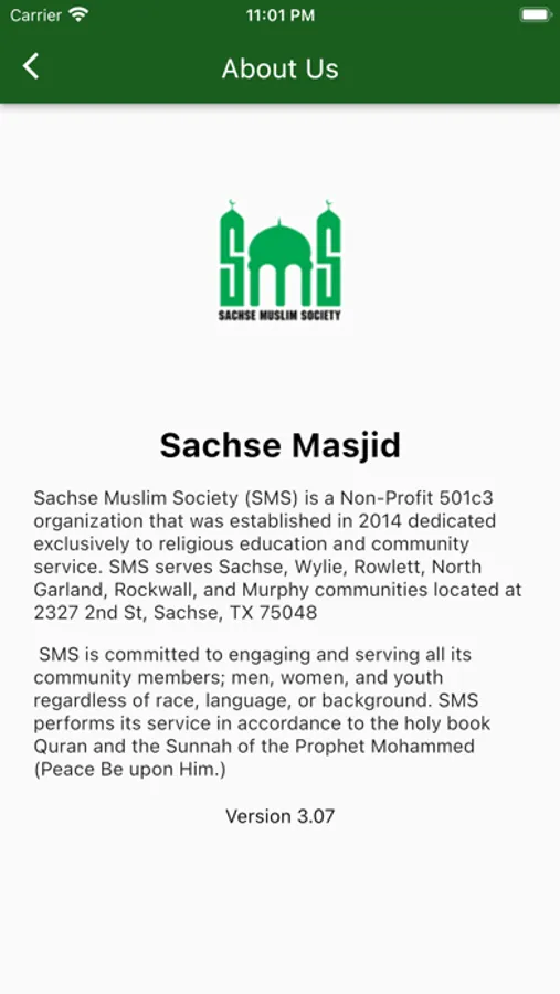 Sachse Muslim Society (SMS) is a Non-Profit 501c3 organization that was established in 2014 dedicated exclusively to religious education and community service. SMS serves Sachse, Wylie, Rowlett, North Garland, Rockwall, and Murphy communities located at 2327 2nd St, Sachse, TX 75048