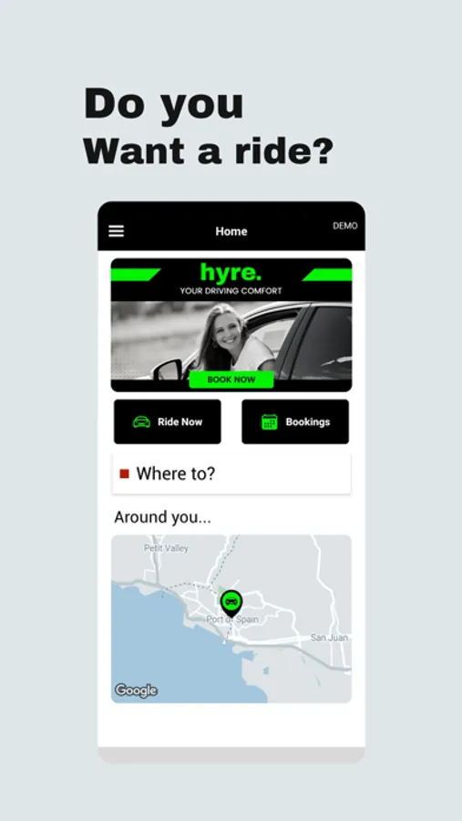 Hyre Passenger is the passenger side application if Hyre ride sharing service. Customers can conveniently find a suitable ride driver for them according to their location and destination.
