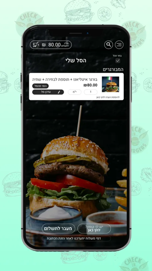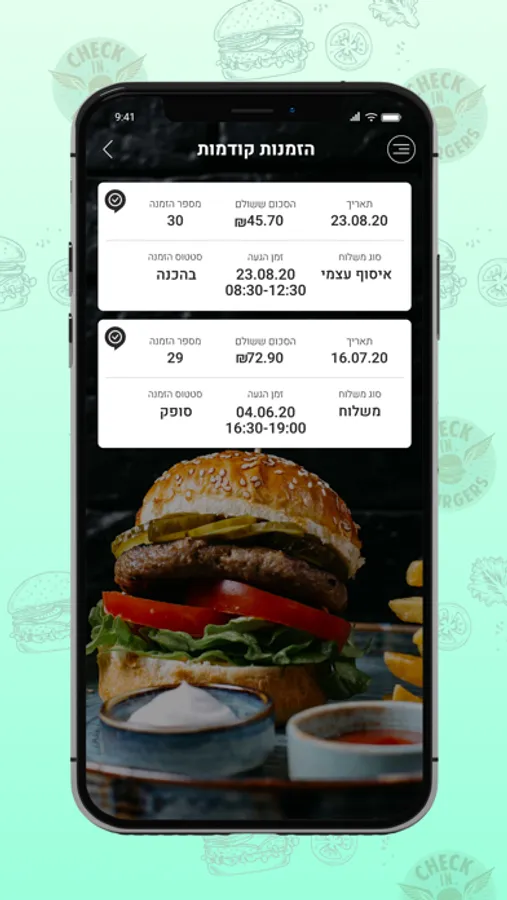 ניתן לבצע הזמנות ומשלוחים ישירות מהאפליקציה Check in.