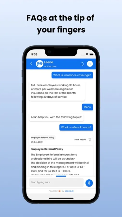 An AI-based HR assistant on a kiosk provides employees with immediate answers to their queries, monitors employee mood scores, conducts HR transactions, and does much more.