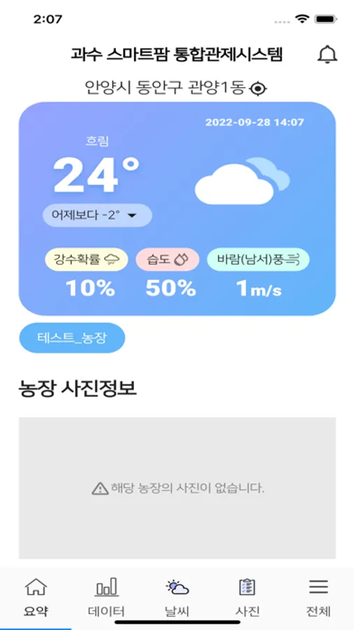 2. 영농계기판을 통해 등록 된 농장의 온/습도 및 CO2, 일사량 등을 확인합니다.
