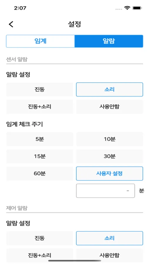 최대 5분 최소1분단위로 데이터 송수신