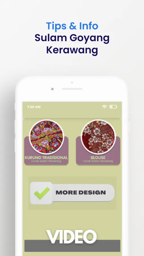 Aplikasi ini menghimpunkan koleksi corak sulam goyang kerawang. Terdapat pelbagai kategori busana berserta corak dan design sulam goyang yang menarik. Setiap corak sulam goyang kerawang ini akan dikemaskini setiap hari dari semasa ke semasa.