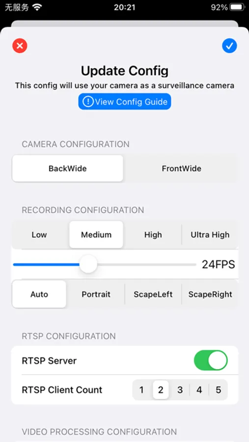 - Supports simultaneous multiple RTSP over TCP and RTSP over UDP (when available) player connections for live preview.
