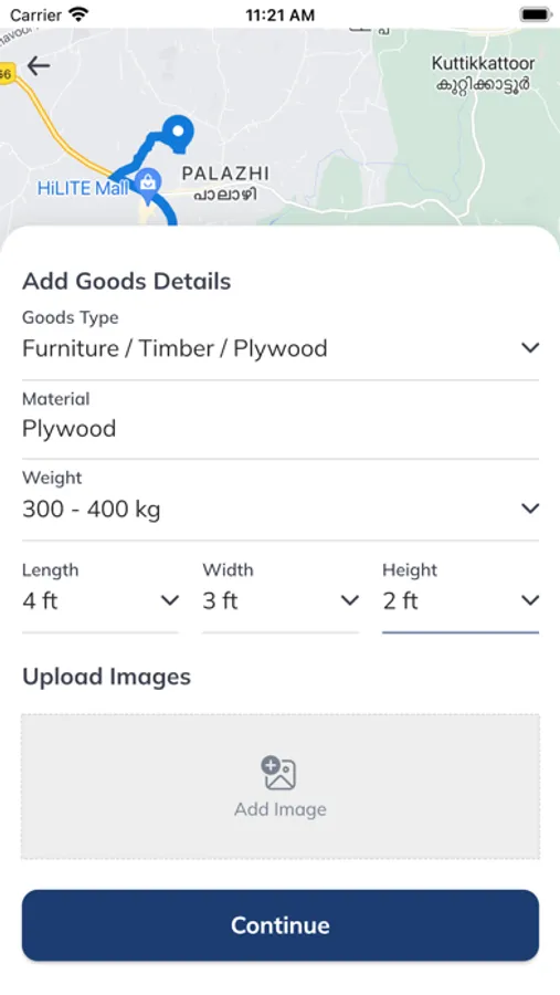 Fill in the details of the goods you wish to transport.