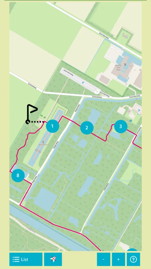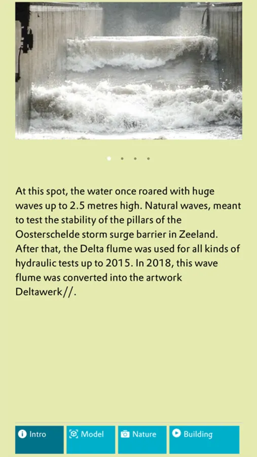 The walk is 3 kilometres long. You start at the entrance building next to the artwork Deltawerk//. At eight models, you watch and listen to the model's story via this app. Follow the white arrows and the numbers in the map and be amazed!