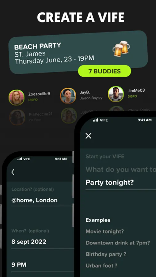 It's an event that you create to organize something: evening, outing, weekend, aperitif, etc. Anything that brings your friends together can produce a VIFE.