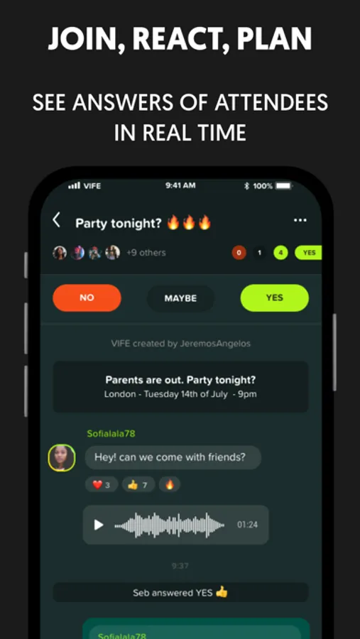 Organize, invite and check your friends' responses. No more trying to get everyone together in a WhatsApp or Snapp group.