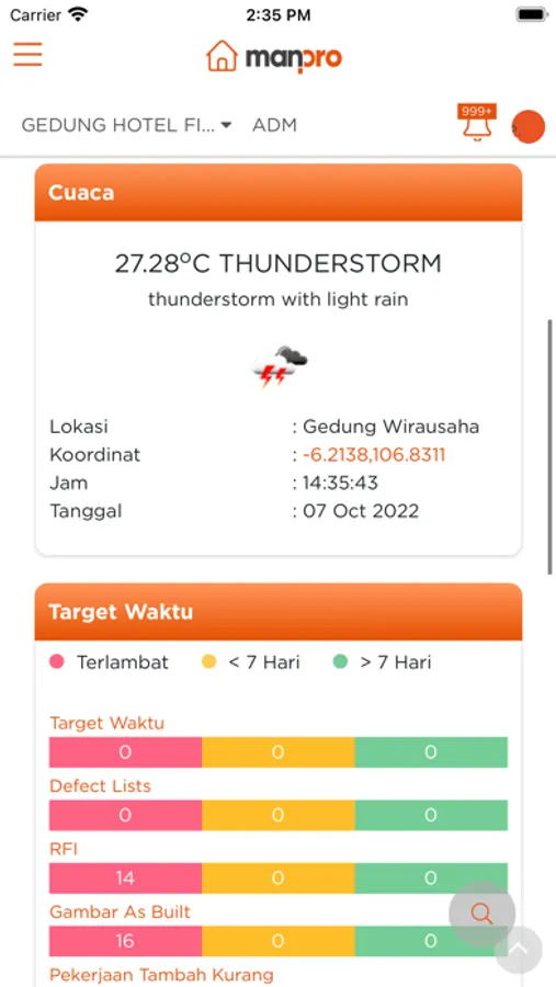 Digitalisasi proses manajemen proyek Anda. Dengan Manpro, seluruh dokumen proyek tersimpan sistematis dan mudah dicari. Buat report proyek laporan sesuai kebutuhan Anda sehingga Anda tidak perlu menyesuaikan lagi dengan cara kerja lama Anda.