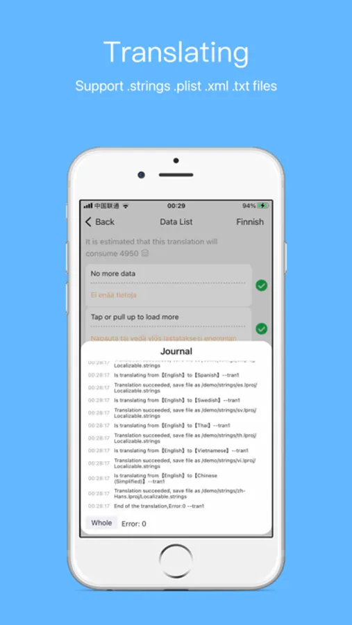 This app is the most convenient way to provide international development tools for developers The content formats of strings, plist, json, xml, and txt can be translated into files according to the corresponding format with one click, and can be directly dragged into xcode for use.