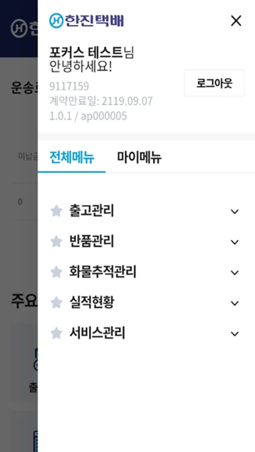 한진택배 계약고객을 위한 택배업무를 종합적으로 처리할 수 있는 모바일 솔루션!!