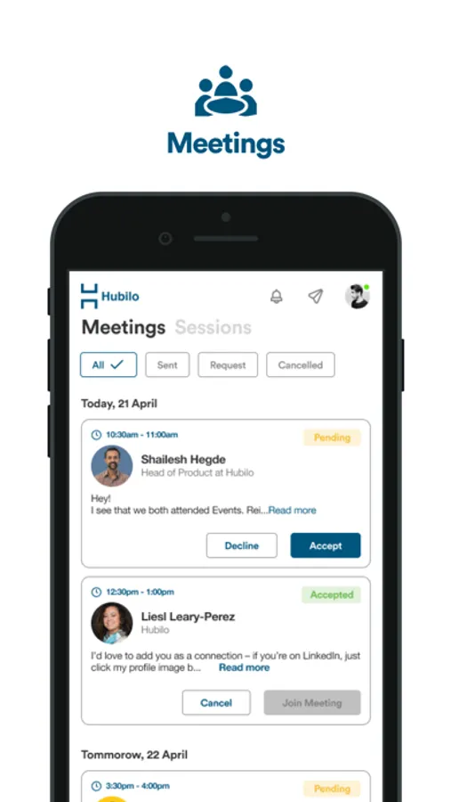 2. Set up meetings with attendees by using the chat and meeting feature.