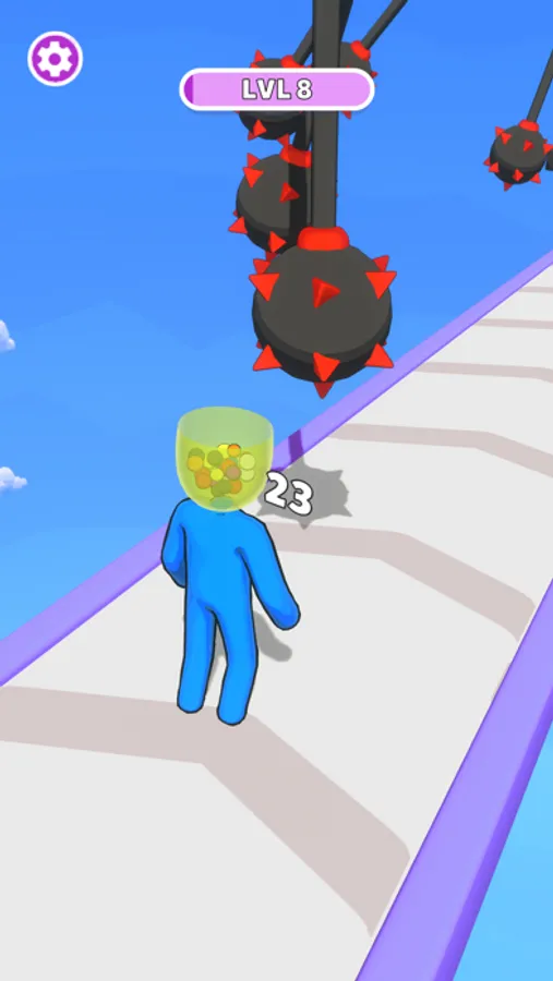 Get the real parkour experience with the Bowl Head character. It will be really hard to keep the balls balanced on your cup head. Be careful not to hit the obstacles!