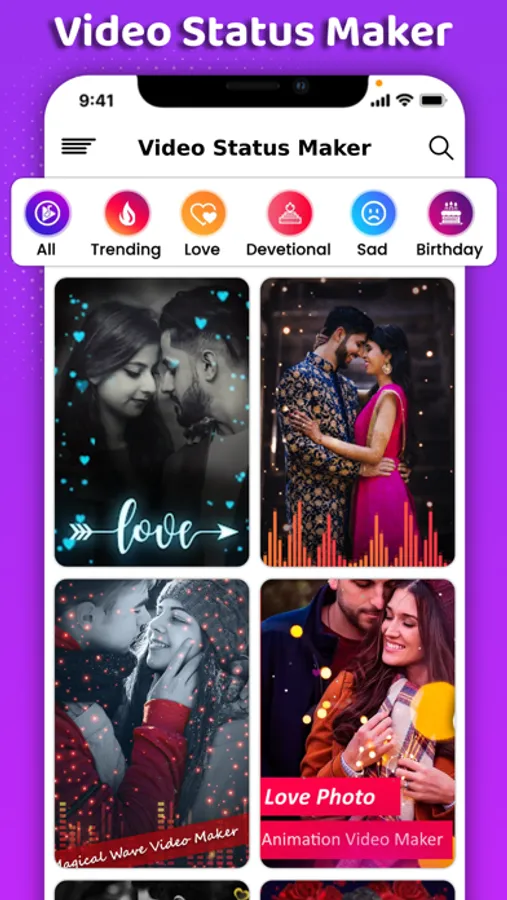 Master app to make lyrical video status song for your status with your photos in one minute using latest trending song.